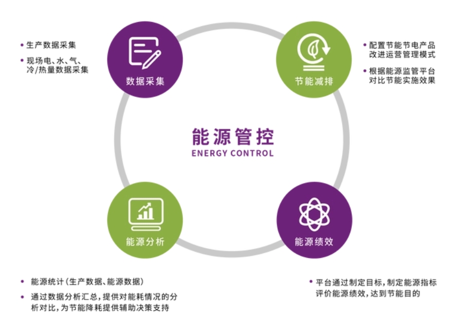 监测能耗使用情况,对标能耗限额、设备能效标准,及时发现能耗漏洞,能耗超限预警,辅助节能降耗;