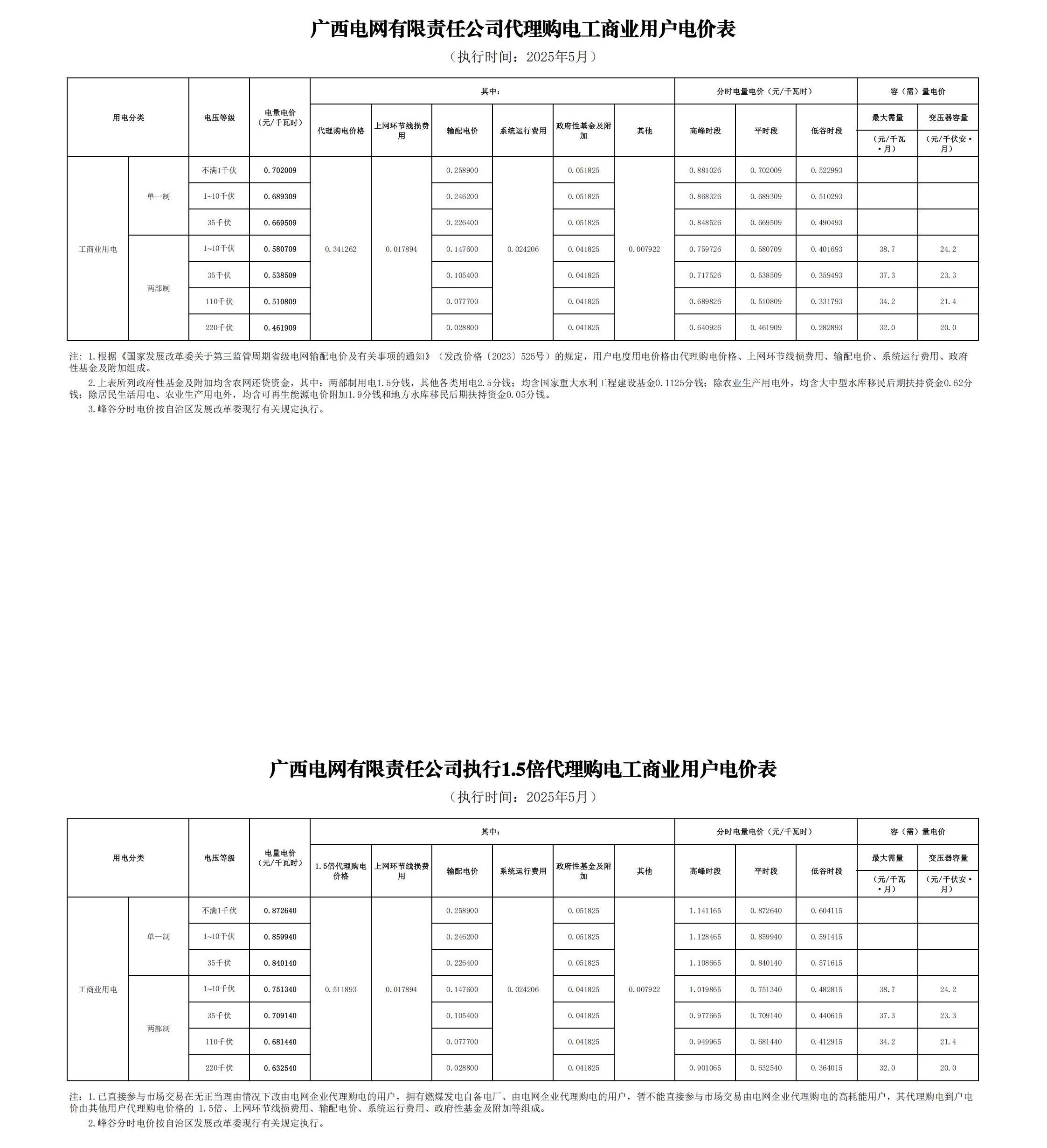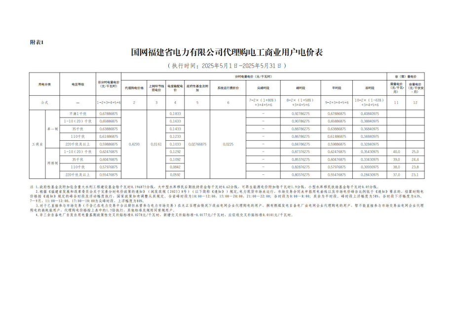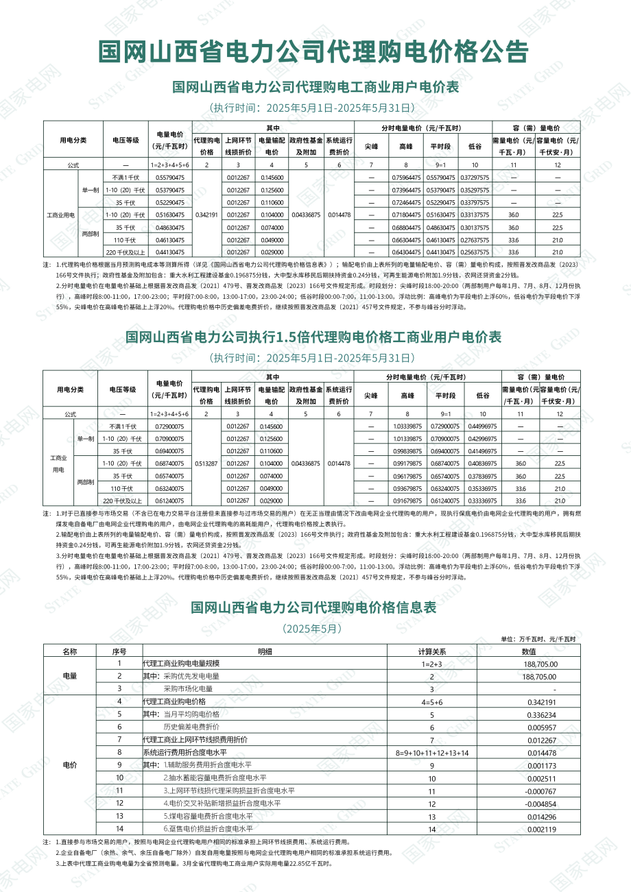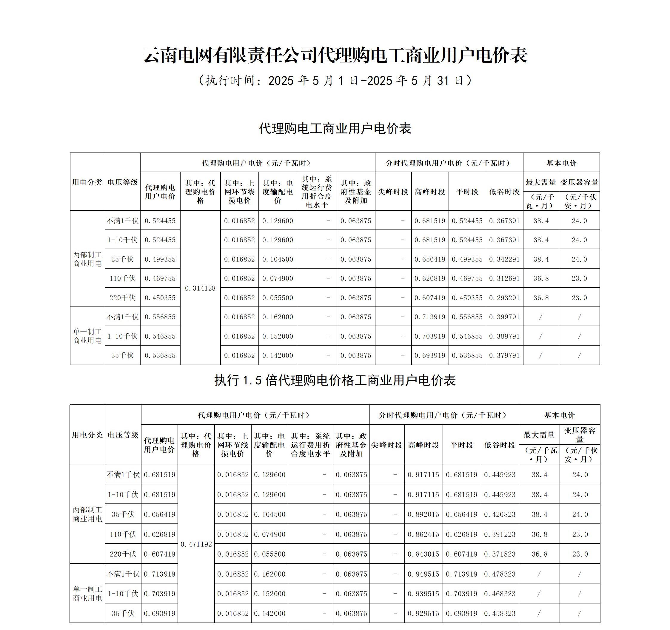 内蒙古(蒙东)5月份代理购电工商业用户电价表