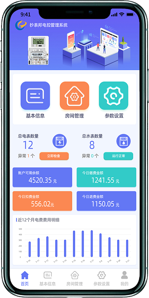 可以给每个房间添加房租协议,系统会自动根据设置的时间按期扣房租,房租采用预付费模式,如果余额不足则系统会强制拉闸,方便物业催缴房租。