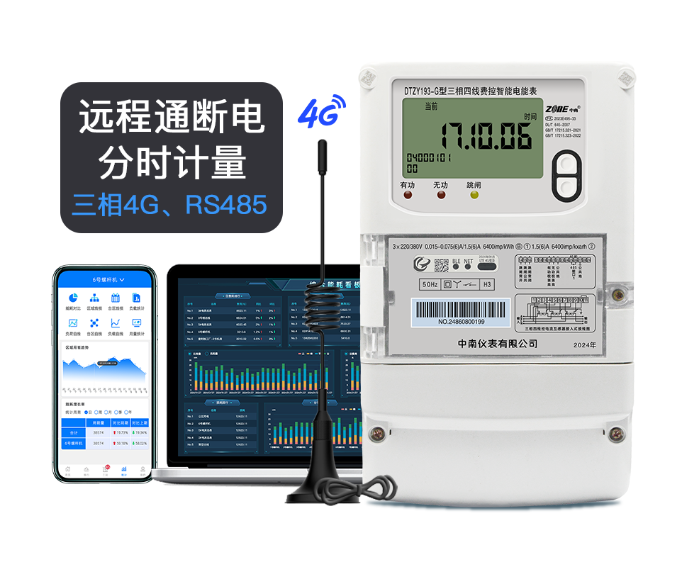 中南仪表DTZY193-G型三相四线4G/RS485通讯智能电能表